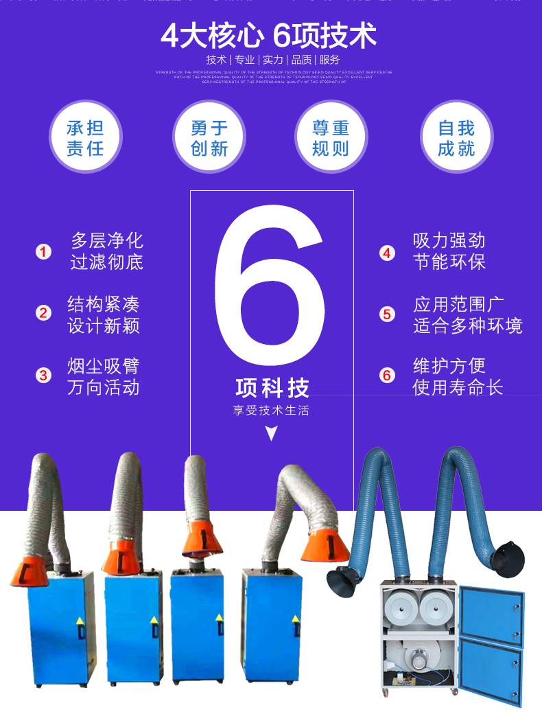 焊煙凈化器即移動式煙塵凈化器,采用先進的加工技術(shù),確保每件產(chǎn)品的質(zhì)量。配置全自動電子脈沖反吹系統(tǒng),可多方位進行過濾器清理,不留死角,粉塵去除率高,提高除塵器過濾效率,增強除塵效果,延長過濾器使用壽命。每臺MZ系列煙塵凈化器,配有一根或二根萬向柔性吸氣臂,用于捕捉煙塵、粉塵,從源頭上解決污染問題,防止污染物向室內(nèi)擴散。