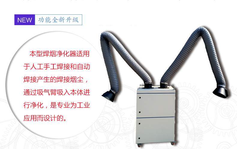 焊接煙塵凈化器是一種可移動機械式凈化器,適用于焊接、拋光、切割、打磨等工序中產(chǎn)生煙塵和粉塵的凈化。